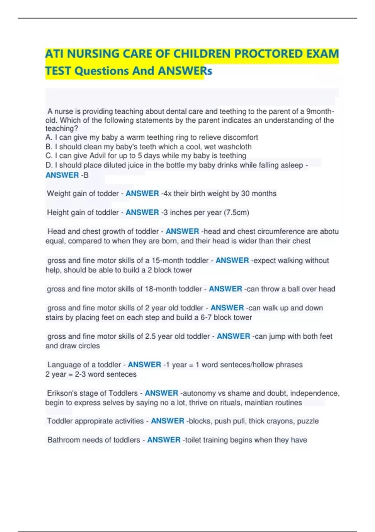 Height gain of toddler - ANSWER -3 inches per year (7.5cm)