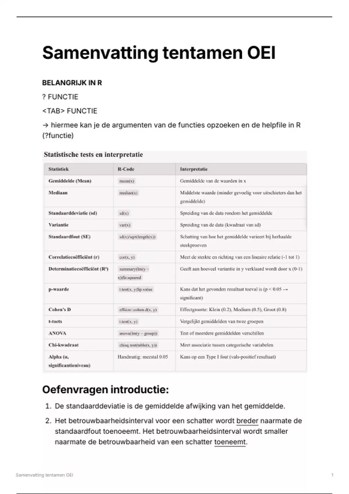 Samenvatting tentamen OEI 1
