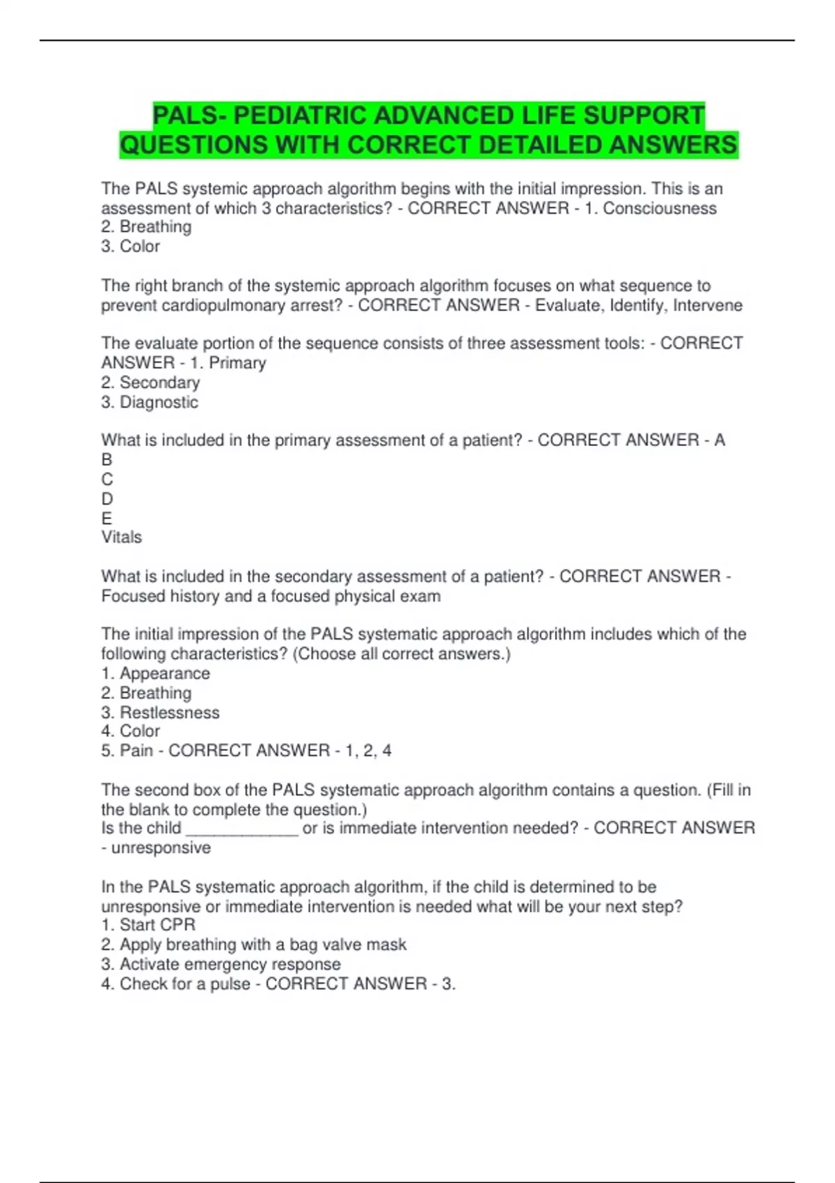 The initial impression of the PALS systematic approach algorithm includes which of the