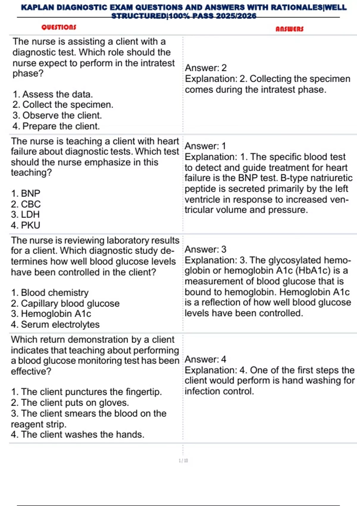 KAPLAN DIAGNOSTIC EXAM QUESTIONS AND ANSWERS WITH RATIONALES |WELL STRUCTURED|100 % PASS 2025/2026