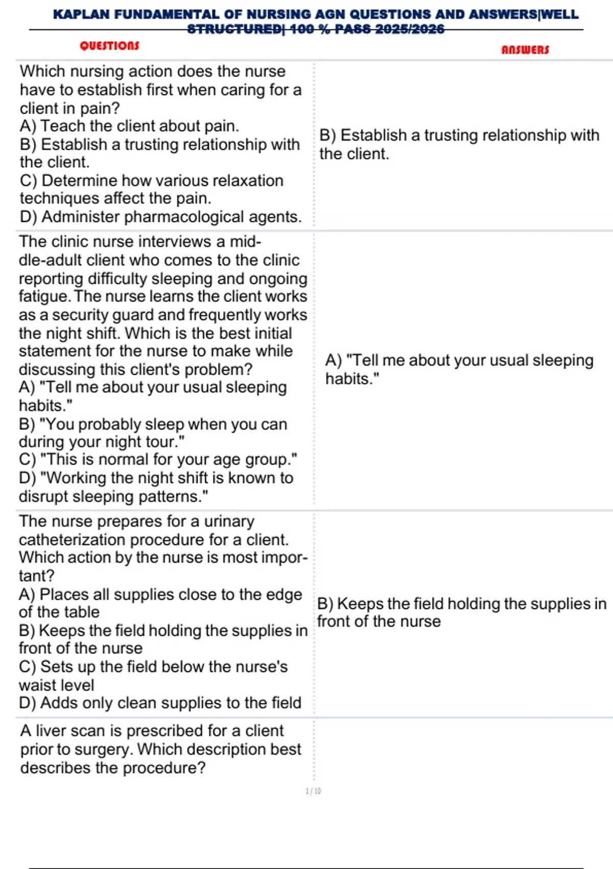 KAPLAN FUNDAMENTAL OF NURSING AGN QUESTIONS AND ANSWERS |WELL STRUCTURED|100 % PASS 2025/2026