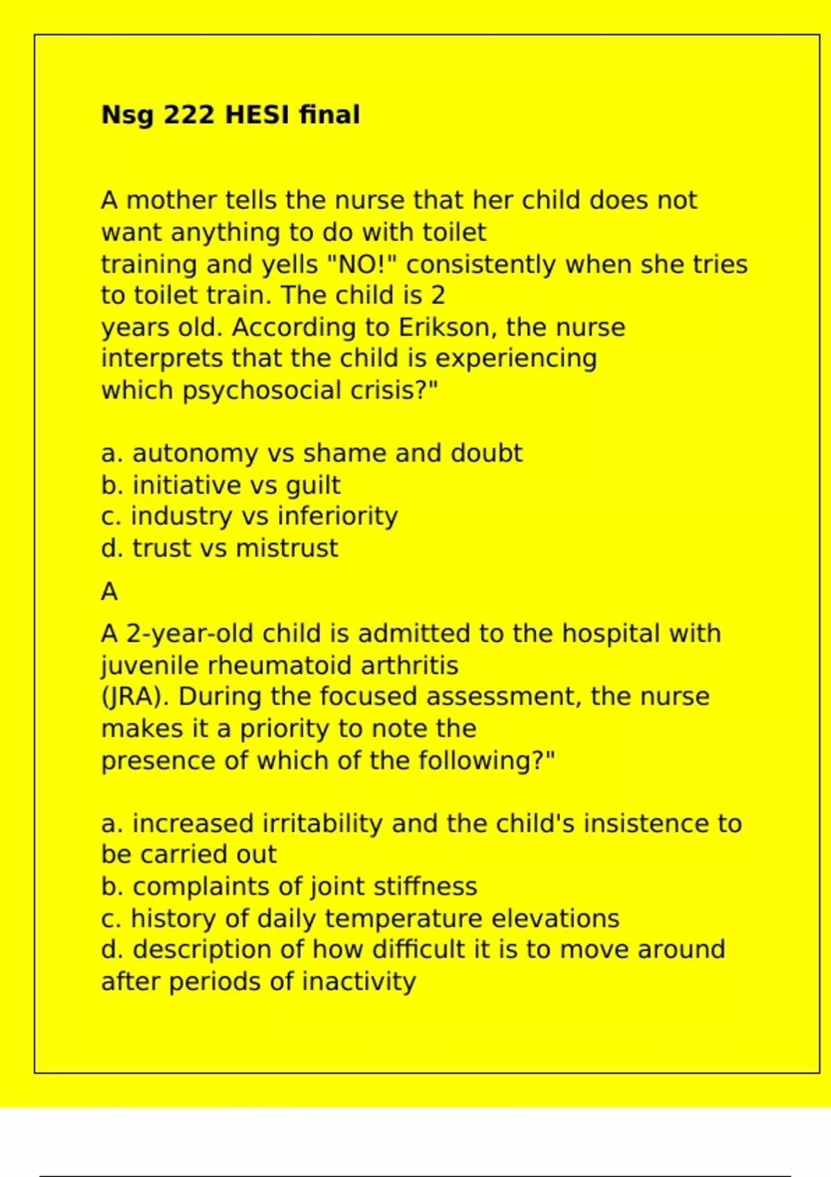 a. autonomy vs shame and doubt