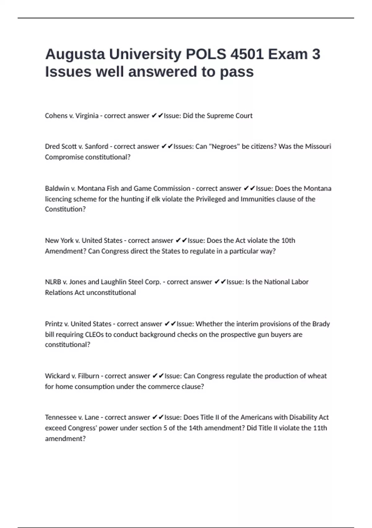 Cohens v. Virginia - correct answer ✔✔Issue: Did the Supreme Court