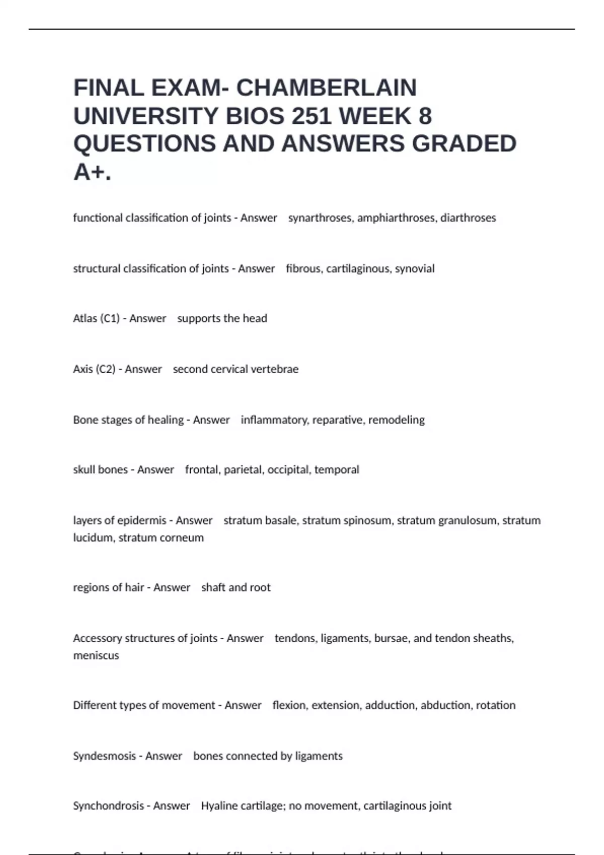 FINAL EXAM- CHAMBERLAIN UNIVERSITY BIOS 251 WEEK 8 QUESTIONS AND ANSWERS GRADED A+.