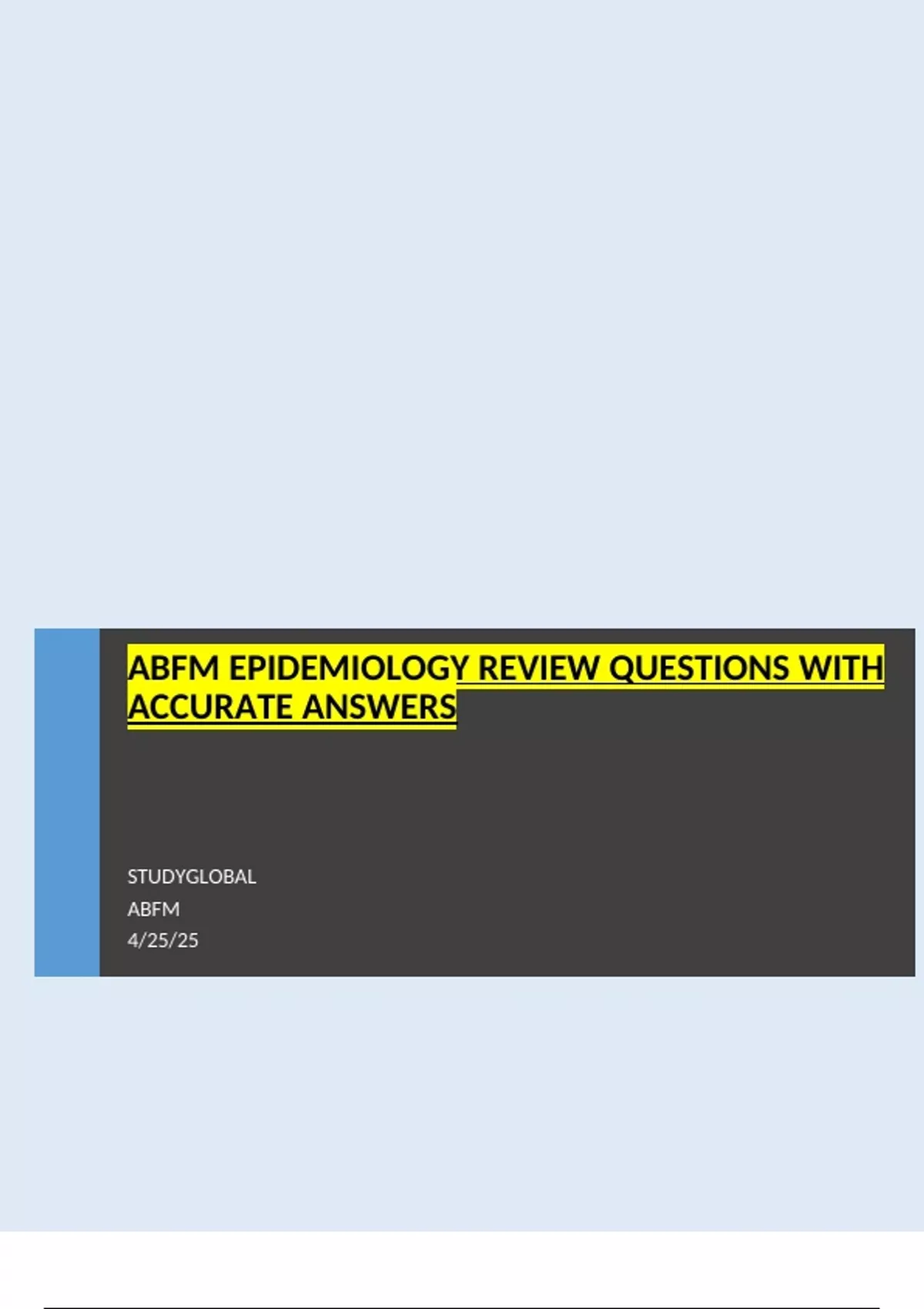 2025/2026 ABFM EPIDEMIOLOGY REVIEW QUESTIONS WITH ACCURATE ANSWERS