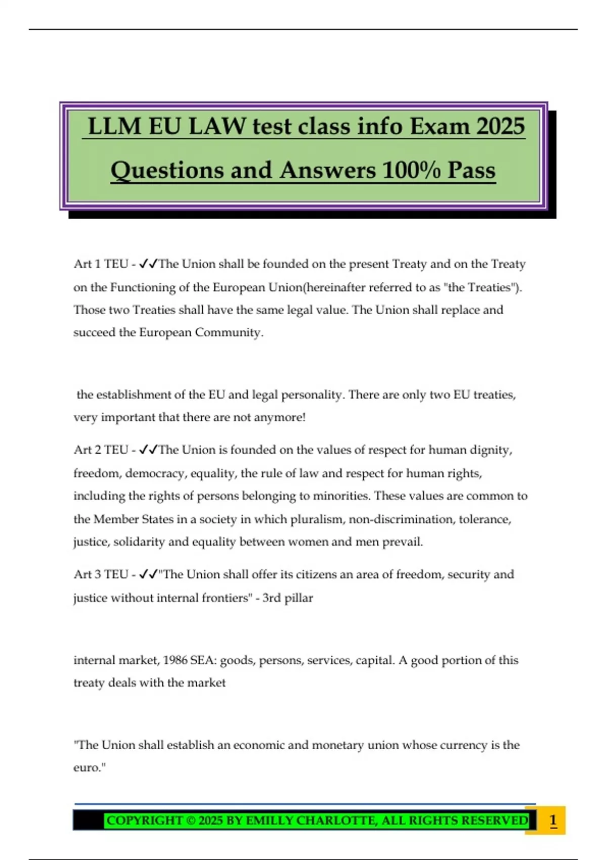Art 1 TEU - ✔✔The Union shall be founded on the present Treaty and on the Treaty