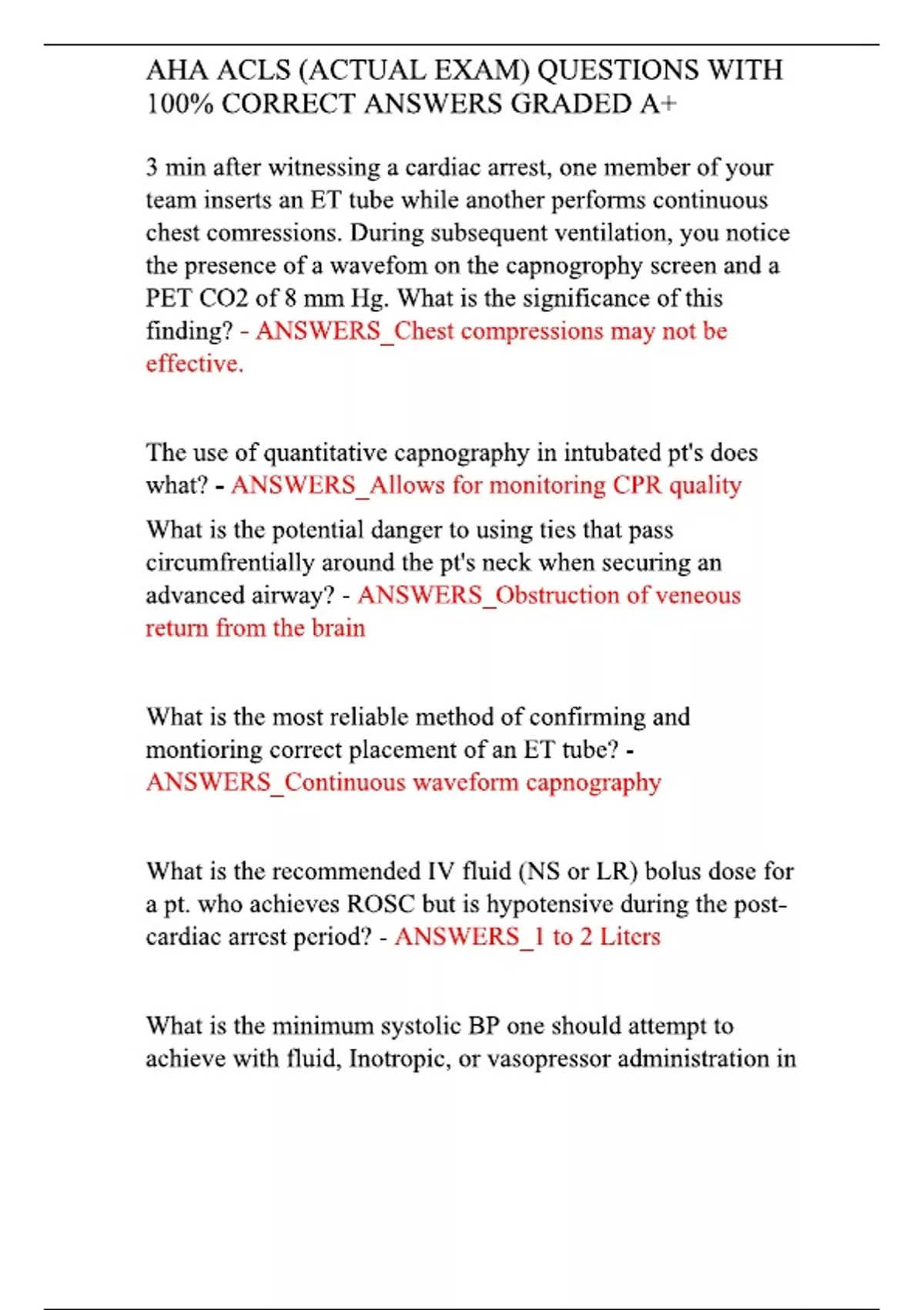 AHA ACLS (ACTUAL EXAM) QUESTIONS WITH 100- CORRECT ANSWERS GRADED A+