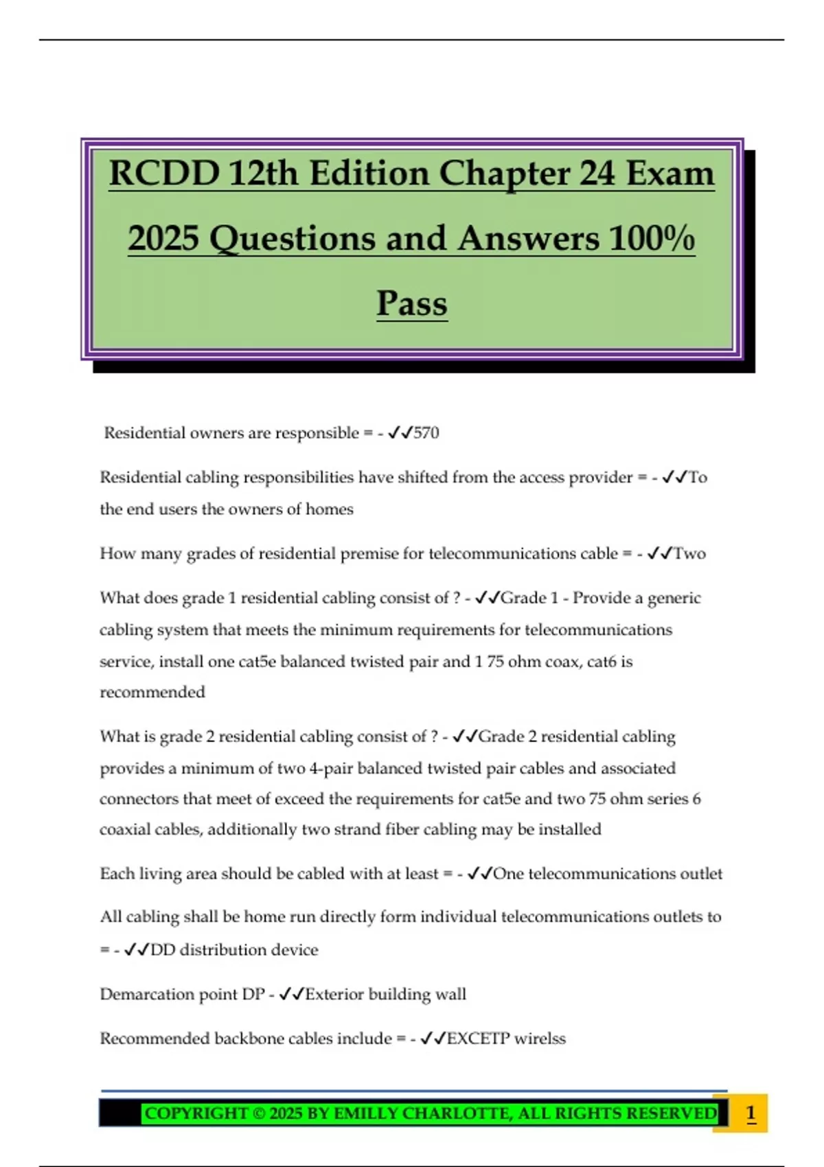Residential cabling responsibilities have shifted from the access provider = - ✔✔To