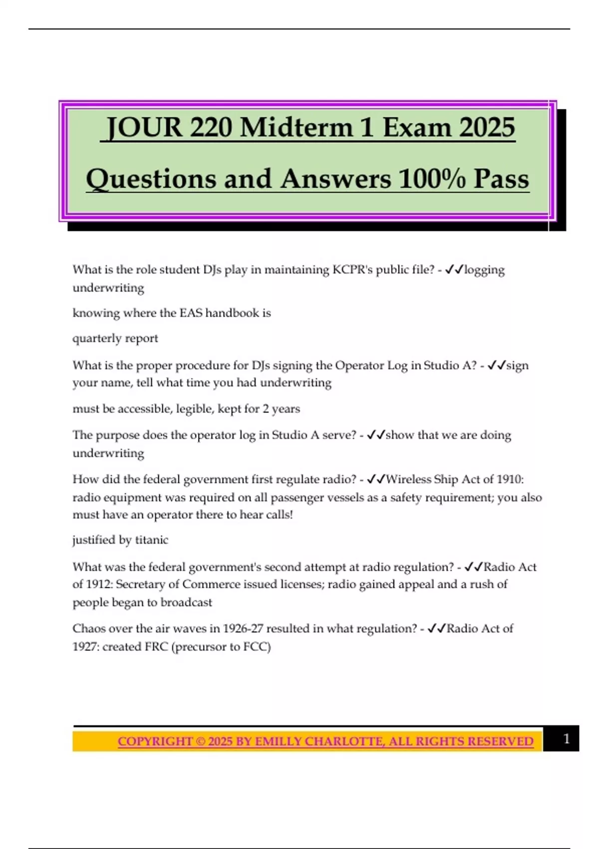 Questions and Answers 100% Pass