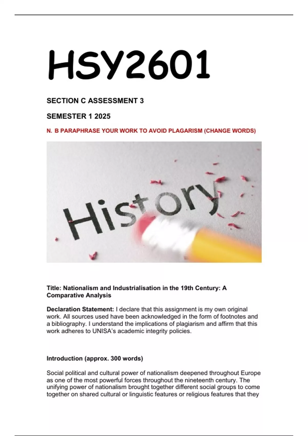 work adheres to UNISA’s academic integrity policies.