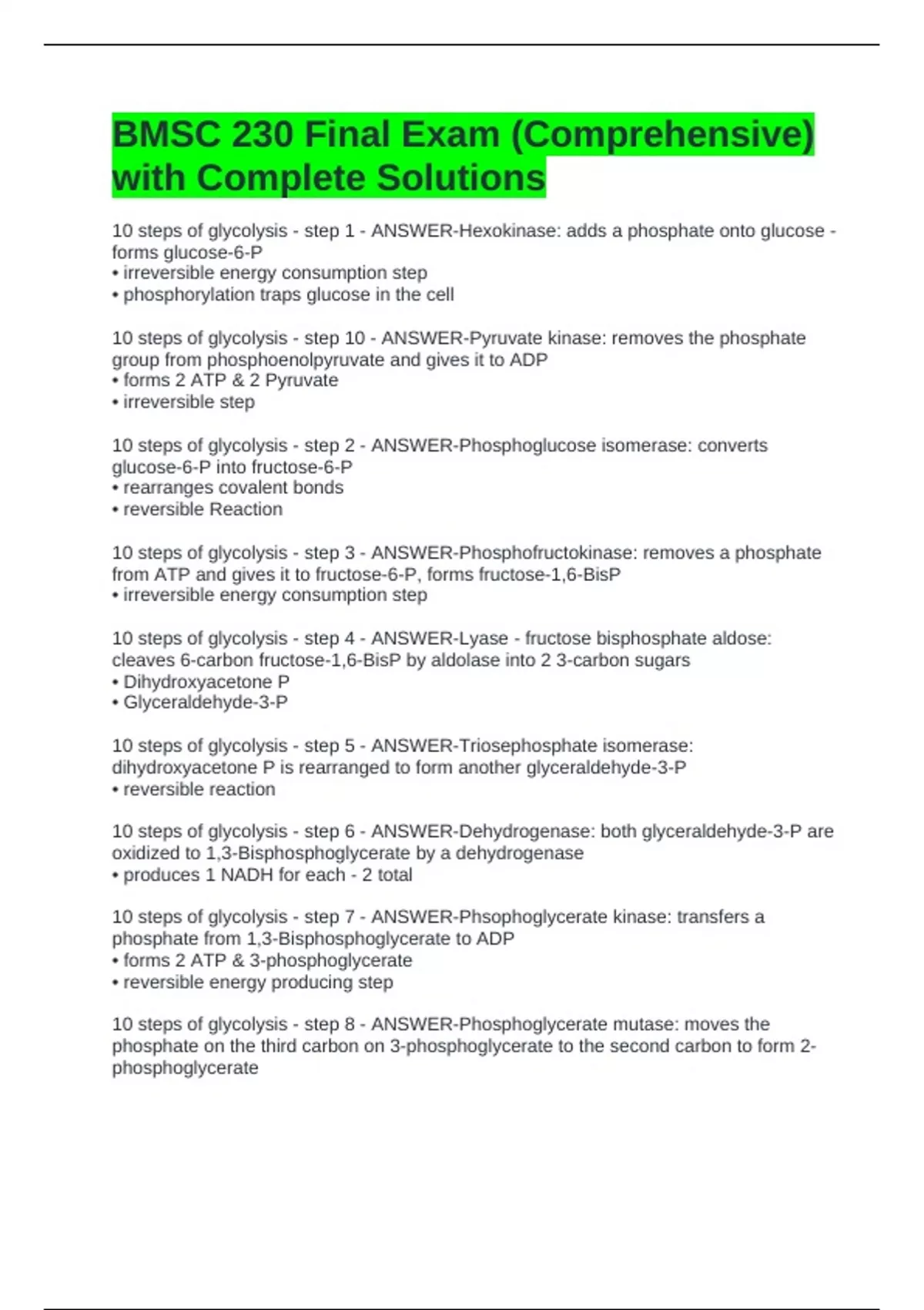 BMSC 230 Final Exam (Comprehensive) with Complete Solutions
