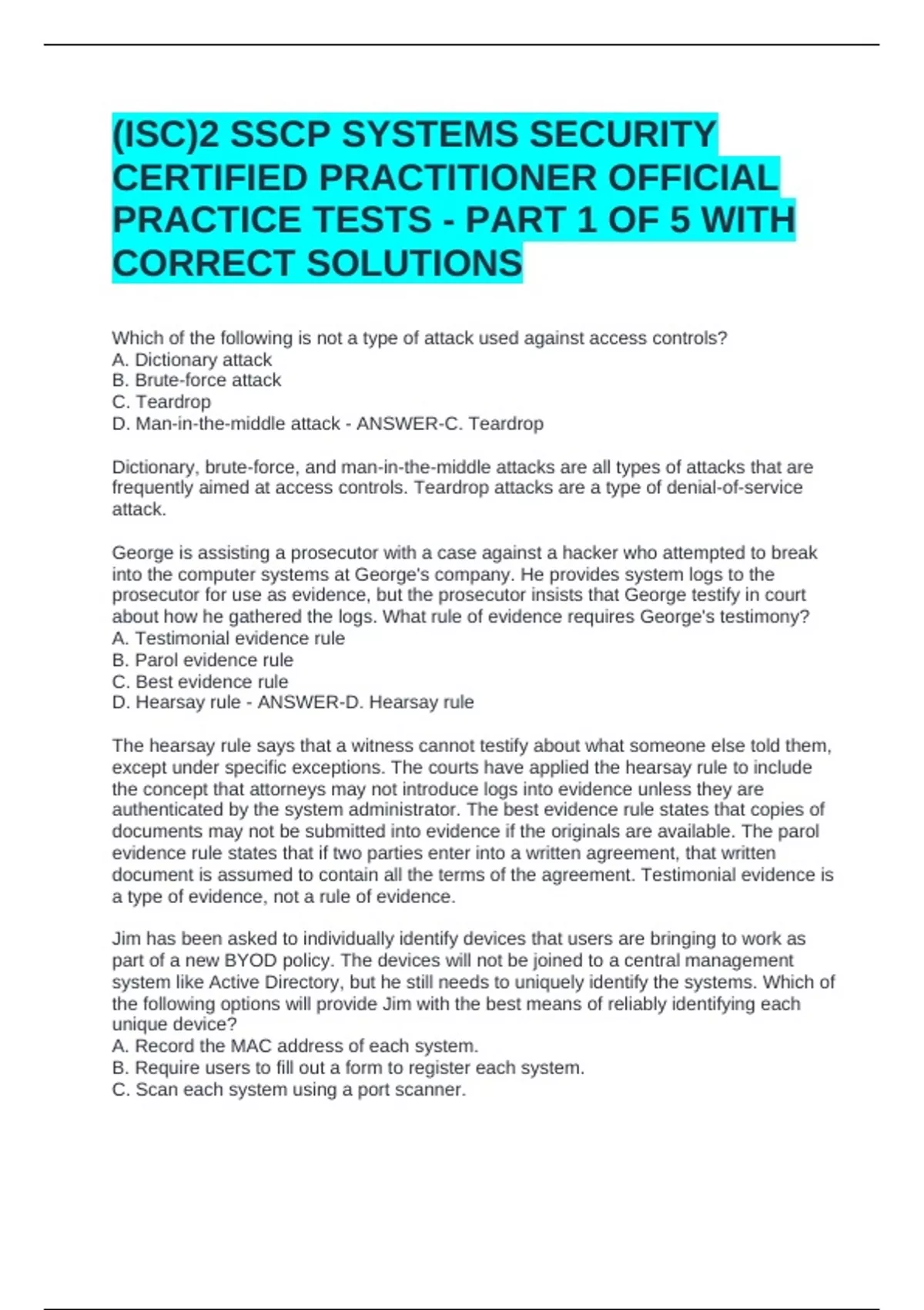 , D. Use device fingerprinting via a web-based registration system. - ANSWER-D. Use