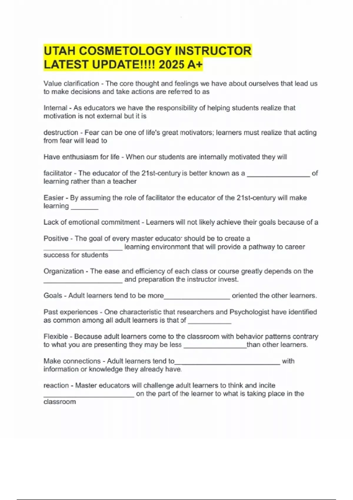 UTAH COSMETOLOGY INSTRUCTOR LATEST UPDATE!!!! 2025 A+