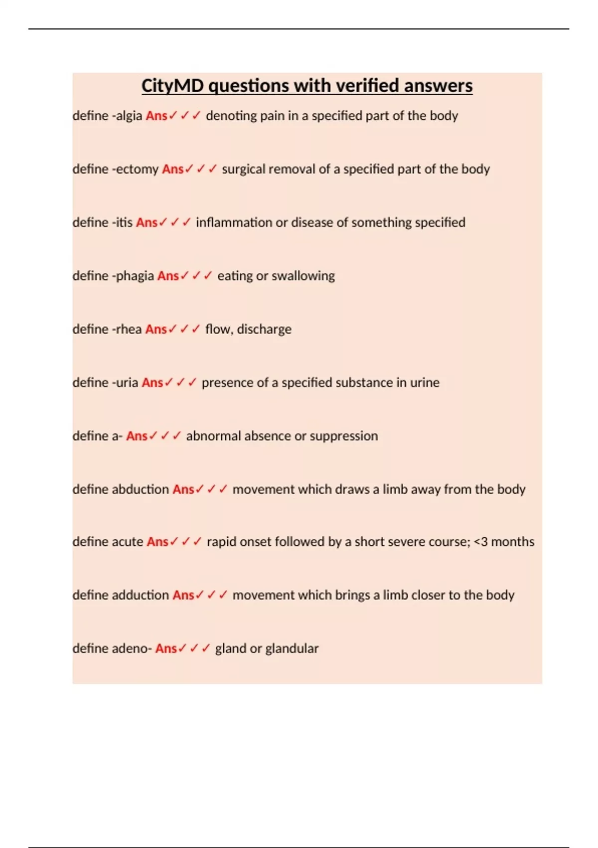define -ectomy Ans✓✓✓ surgical removal of a specified part of the body