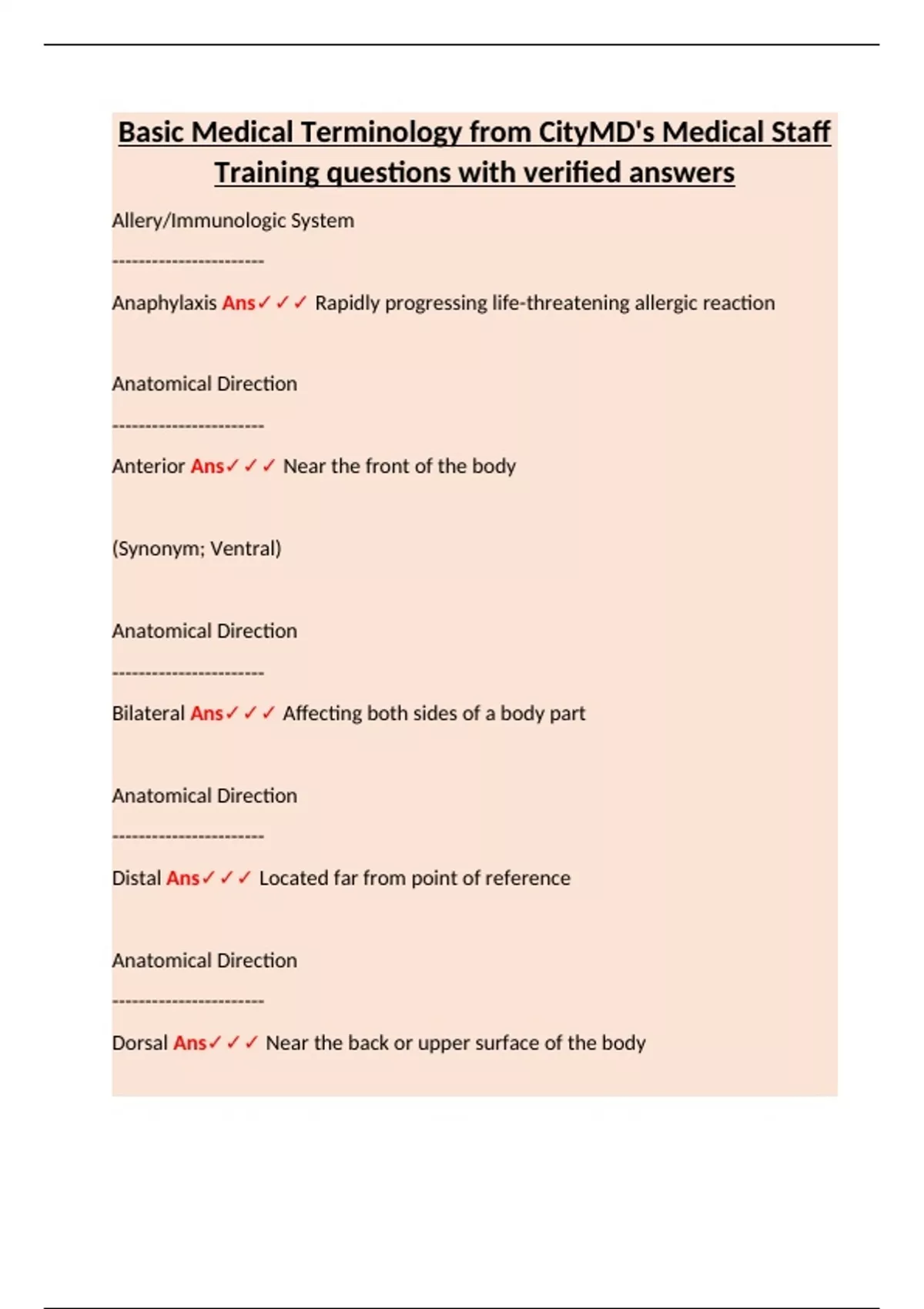 Anaphylaxis Ans✓✓✓ Rapidly progressing life-threatening allergic reaction