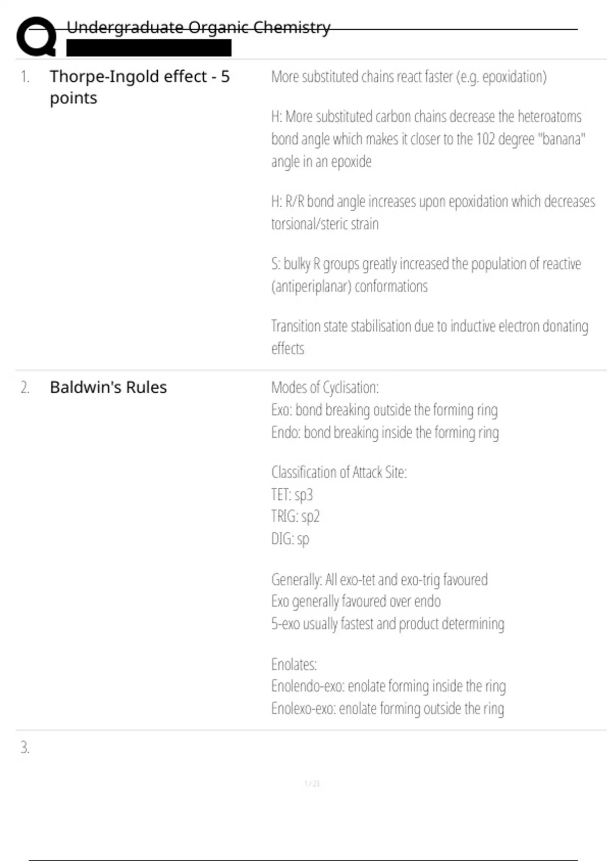 1. Thorpe-Ingold effect - 5 More substituted chains react faster (e.g. epoxidation)