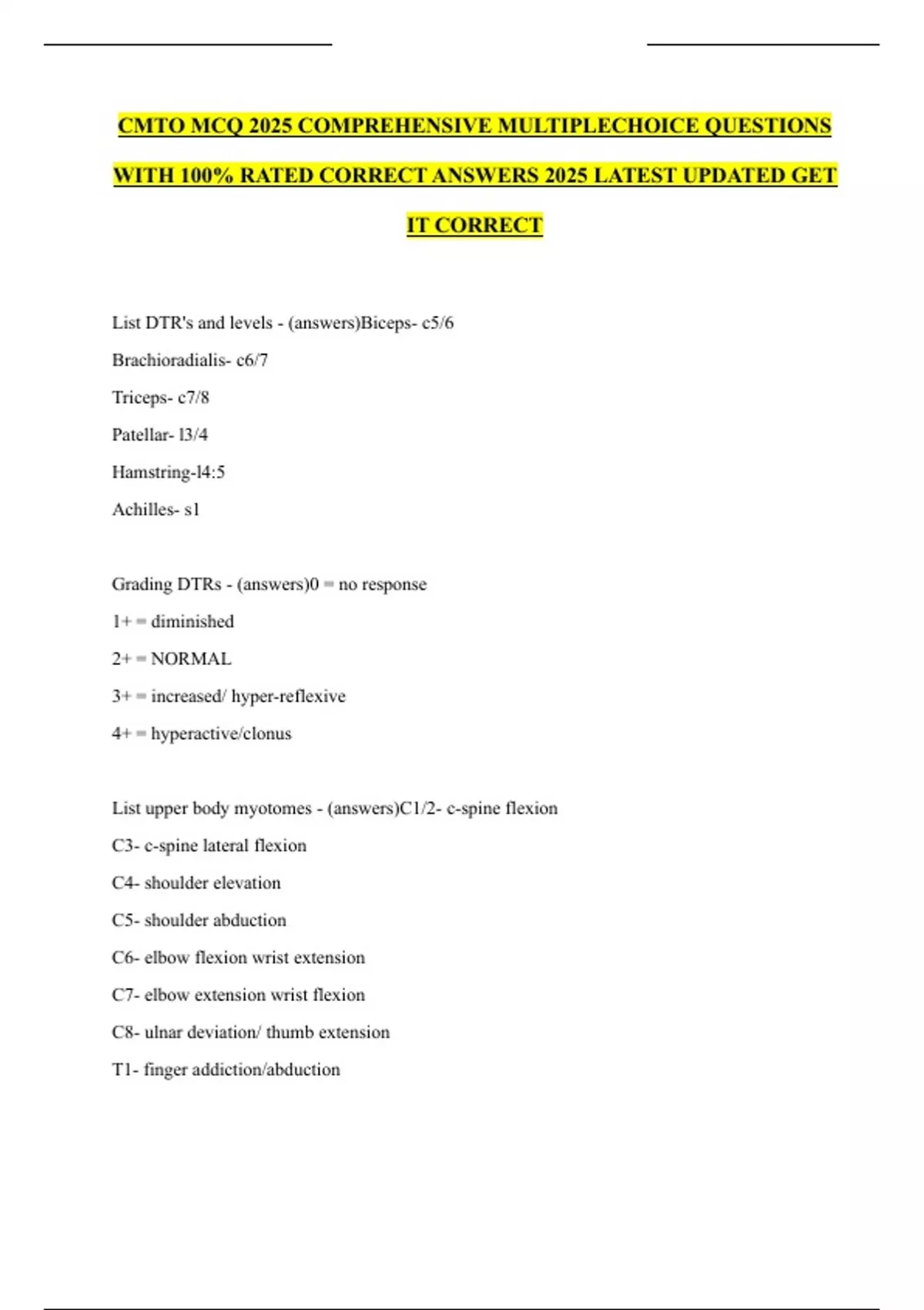 CMTO MCQ 2025 COMPREHENSIVE MULTIPLECHOICE QUESTIONS