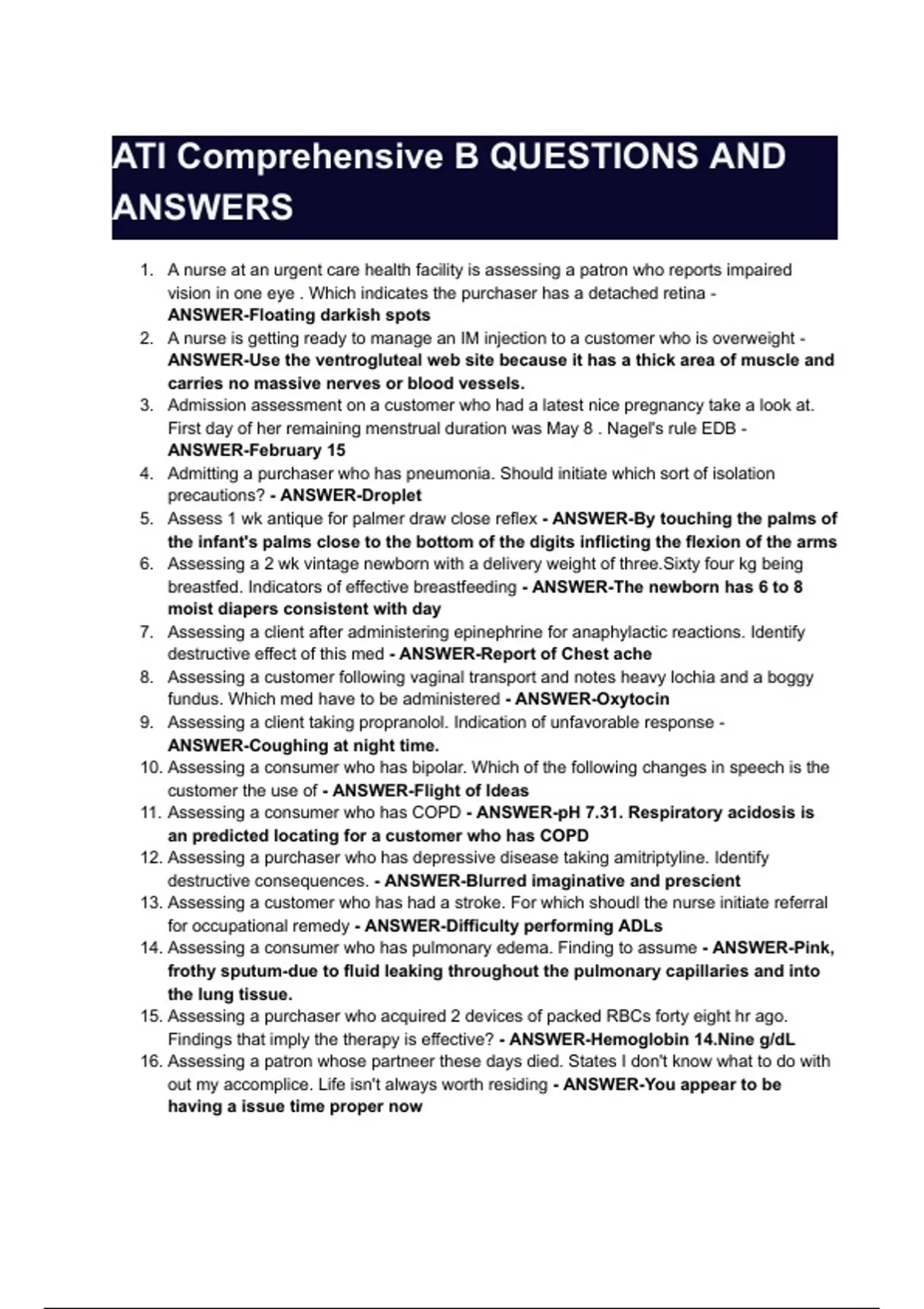 ATI Comprehensive B QUESTIONS AND