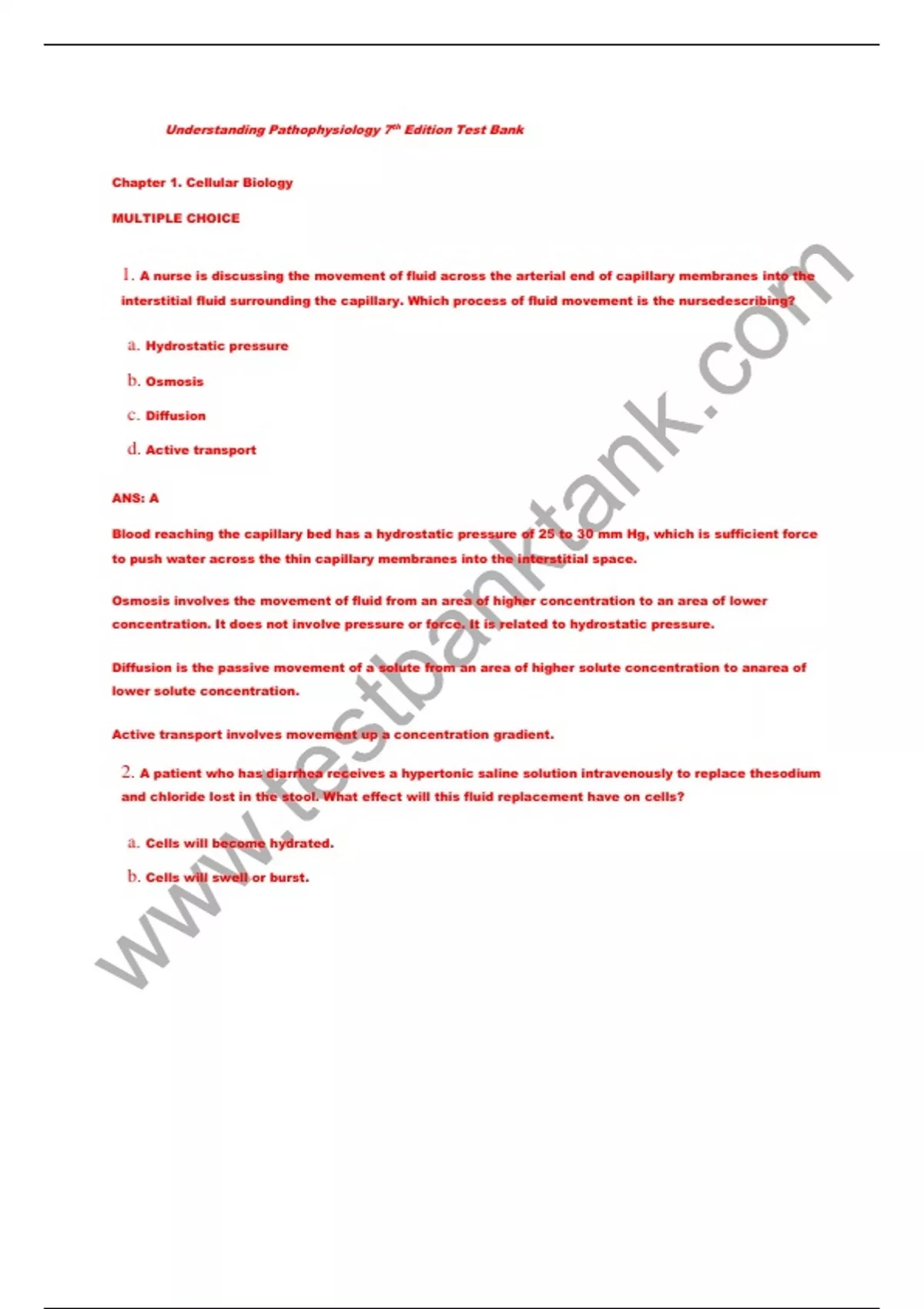 2. A patient who has diarrhea receives a hypertonic saline solution intravenously to replace thesodium