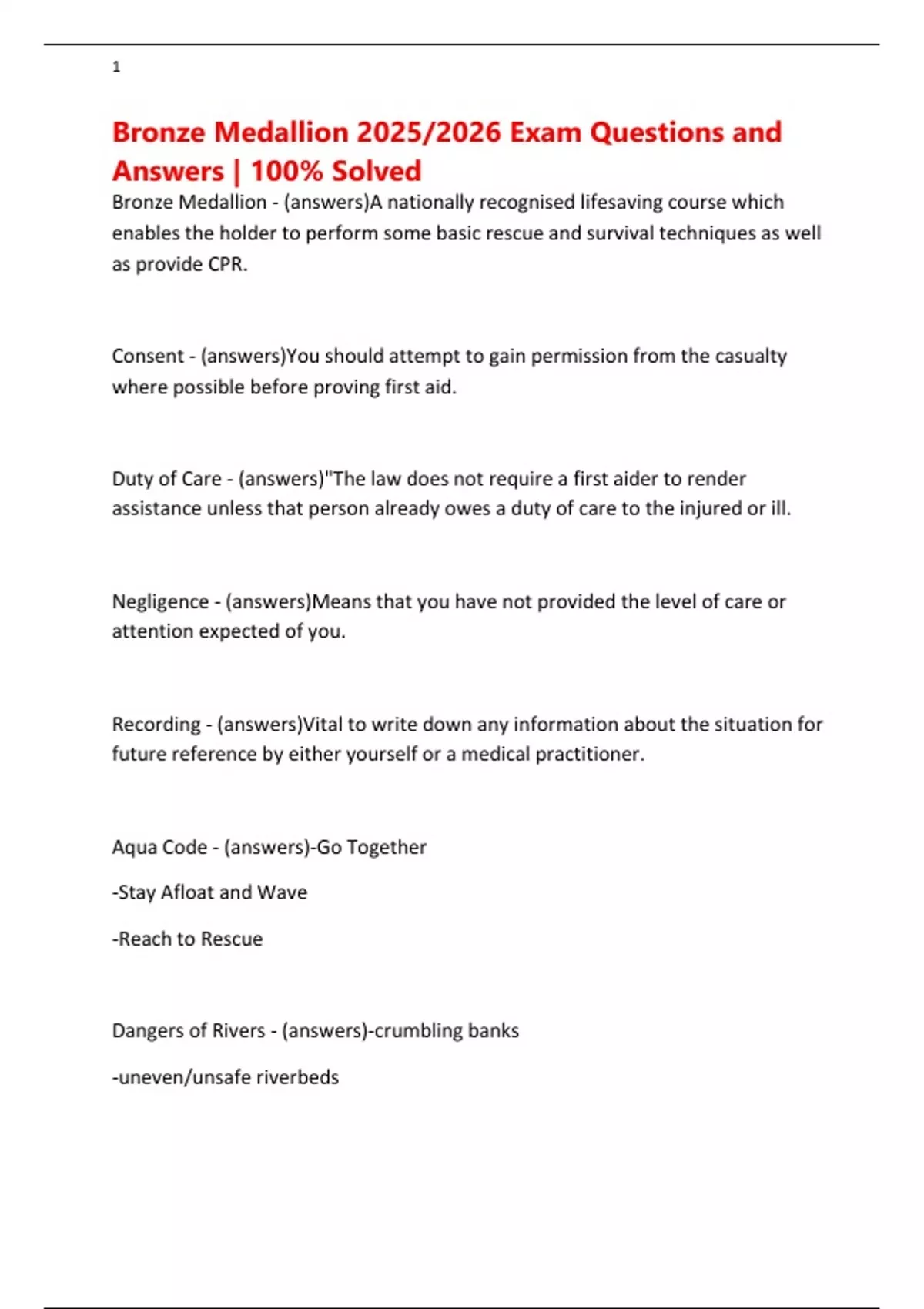 Bronze Medallion 2025/2026 Exam Questions and