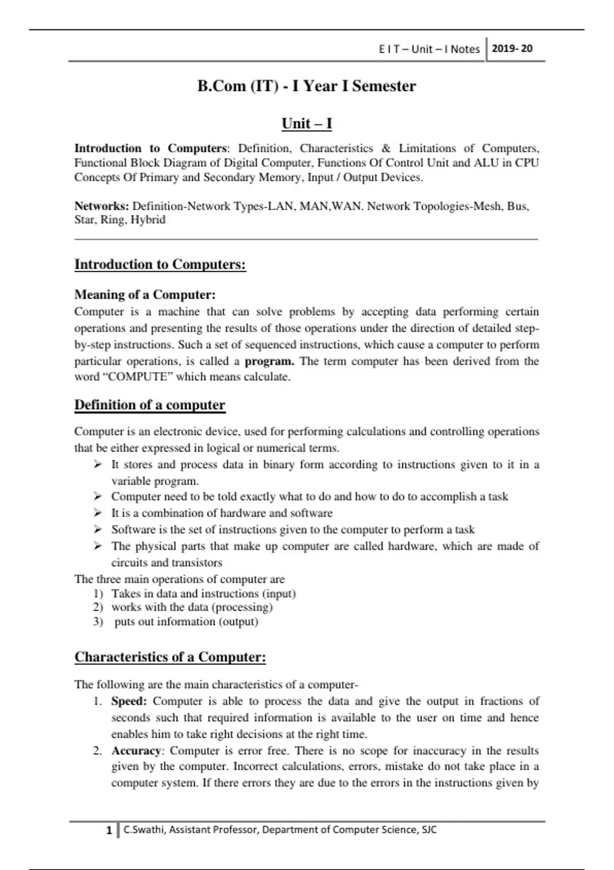 , E I T – Unit – I Notes 2019- 20