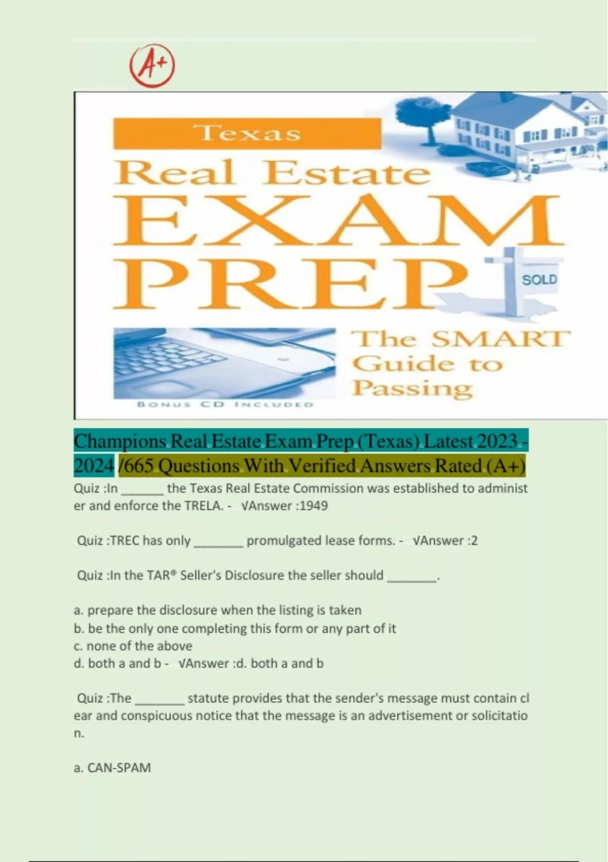 Champions Real Estate Exam Prep (Texas) Latest 2023 - G G G G G G G G