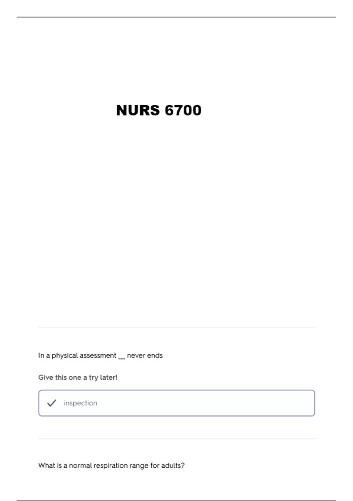 In a physical assessment ___ never ends