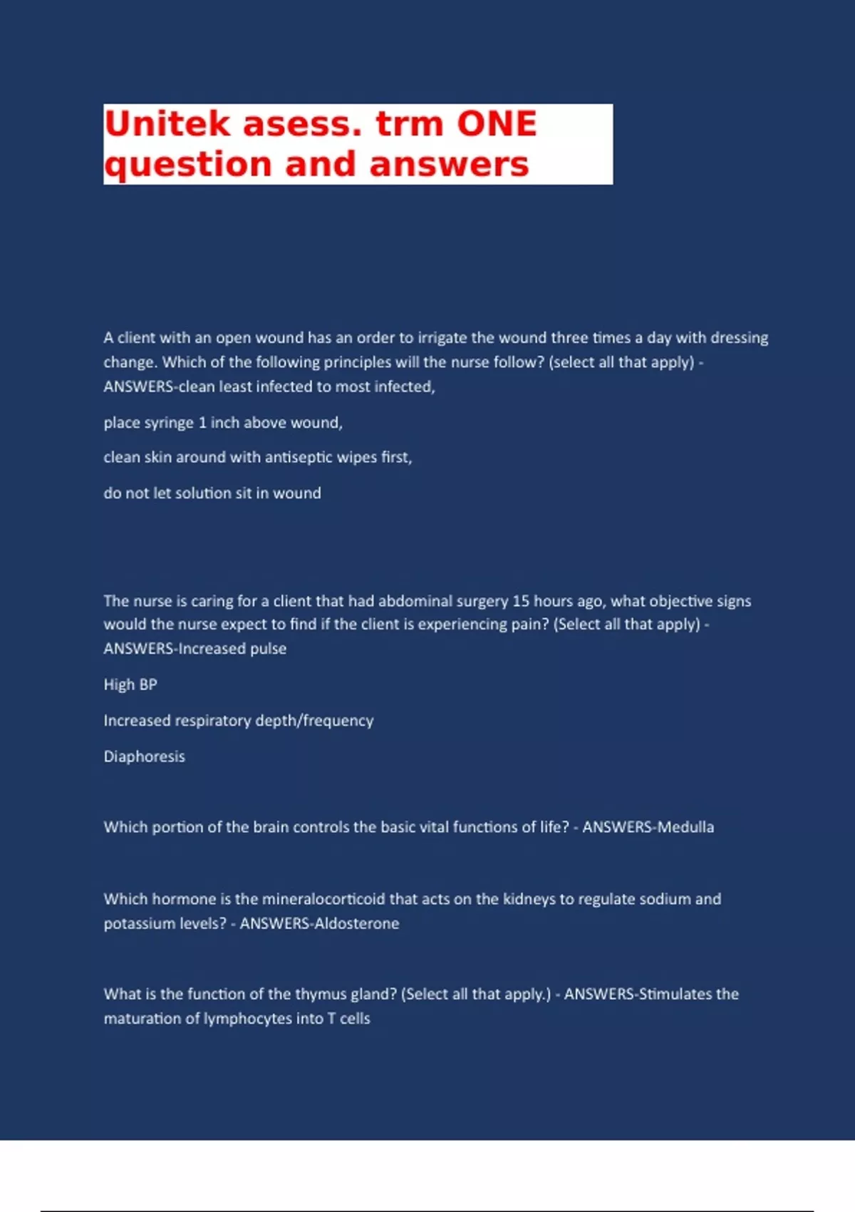Unitek asess. trm ONE question and answers