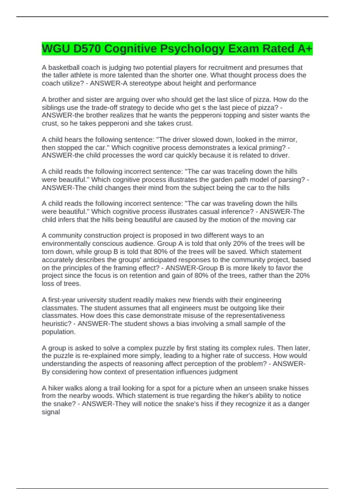 WGU D570 Cognitive Psychology Exam Rated A+