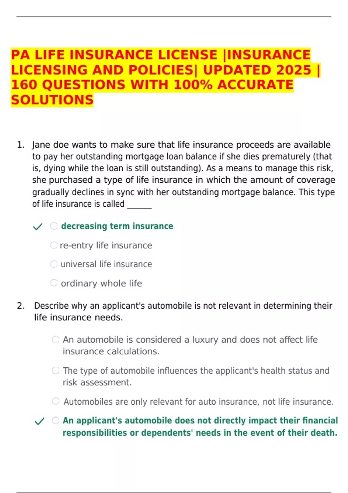 1. Jane doe wants to make sure that life insurance proceeds are available