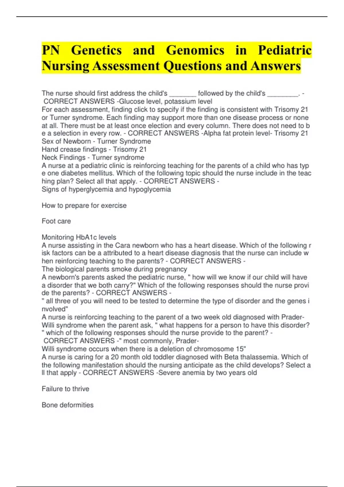ACORRECTAANSWERSA-GlucoseAlevel,Apotassium Alevel