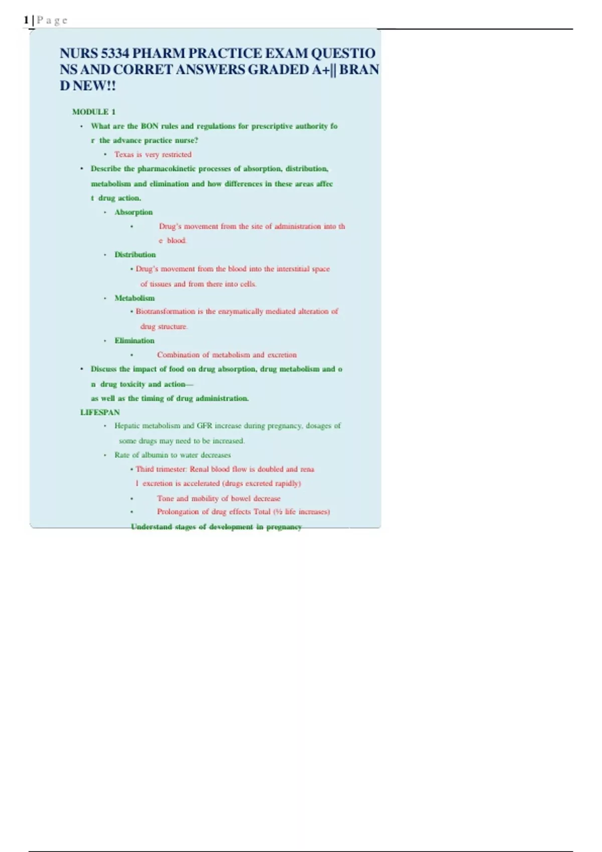 NURS 5334 PHARM PRACTICE EXAM QUESTIO