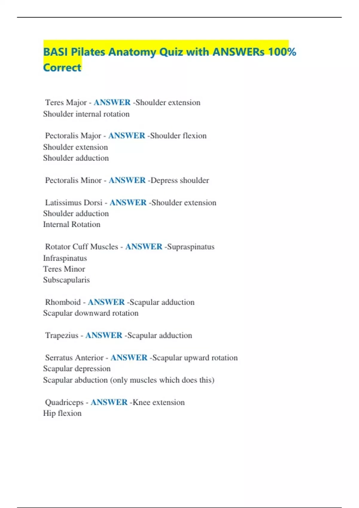 Teres Major - ANSWER -Shoulder extension