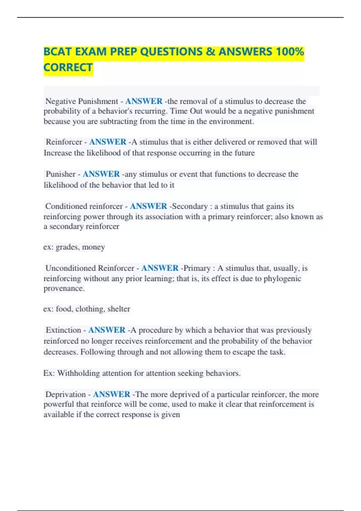 Extinction - ANSWER -A procedure by which a behavior that was previously