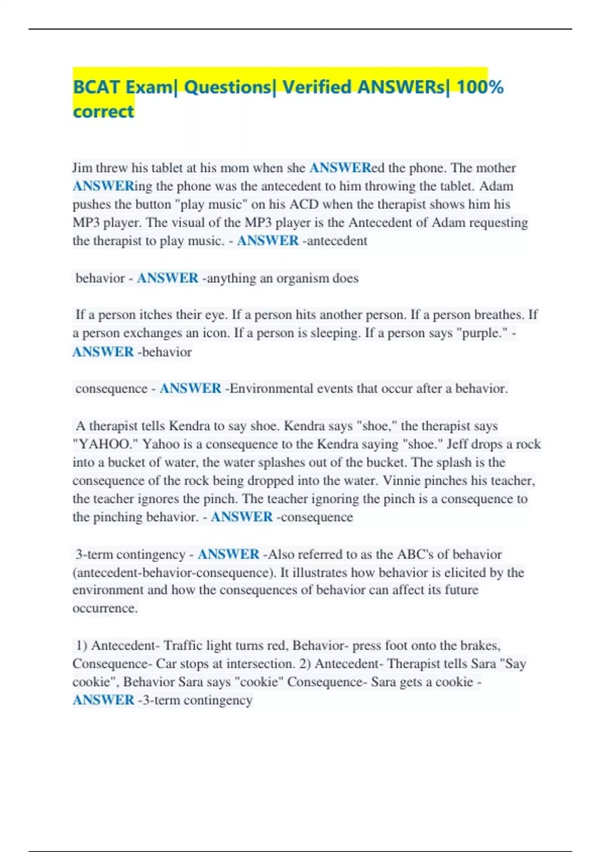 When the phone rings, you ANSWER it. (target behavior-ANSWERing the