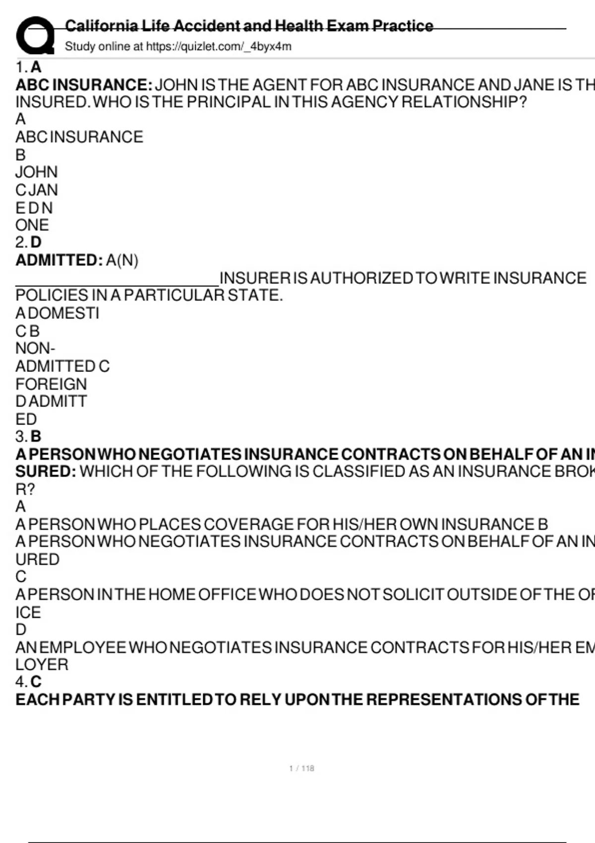 , California Life Accident and Health Exam Practice