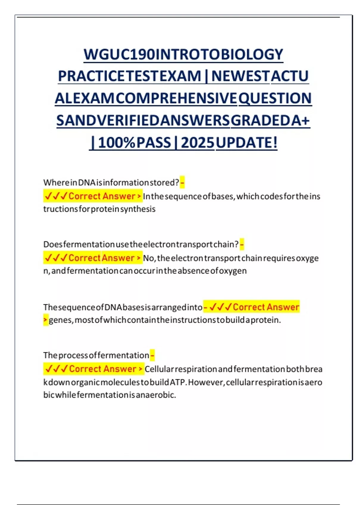 WGU C190 INTRO TO BIOLOGY LATEST UPDATED VERSION ACTUAL EXAM 300 COMPLETE REAL QUESTIONS AND CORRECT ANSWERS (CORRECT VERIFIED SOLUTIONS) GUARANTEED PASS.