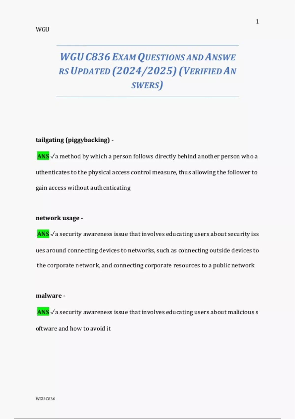 WGU C836 EXAM QUESTIONS AND ANSWE