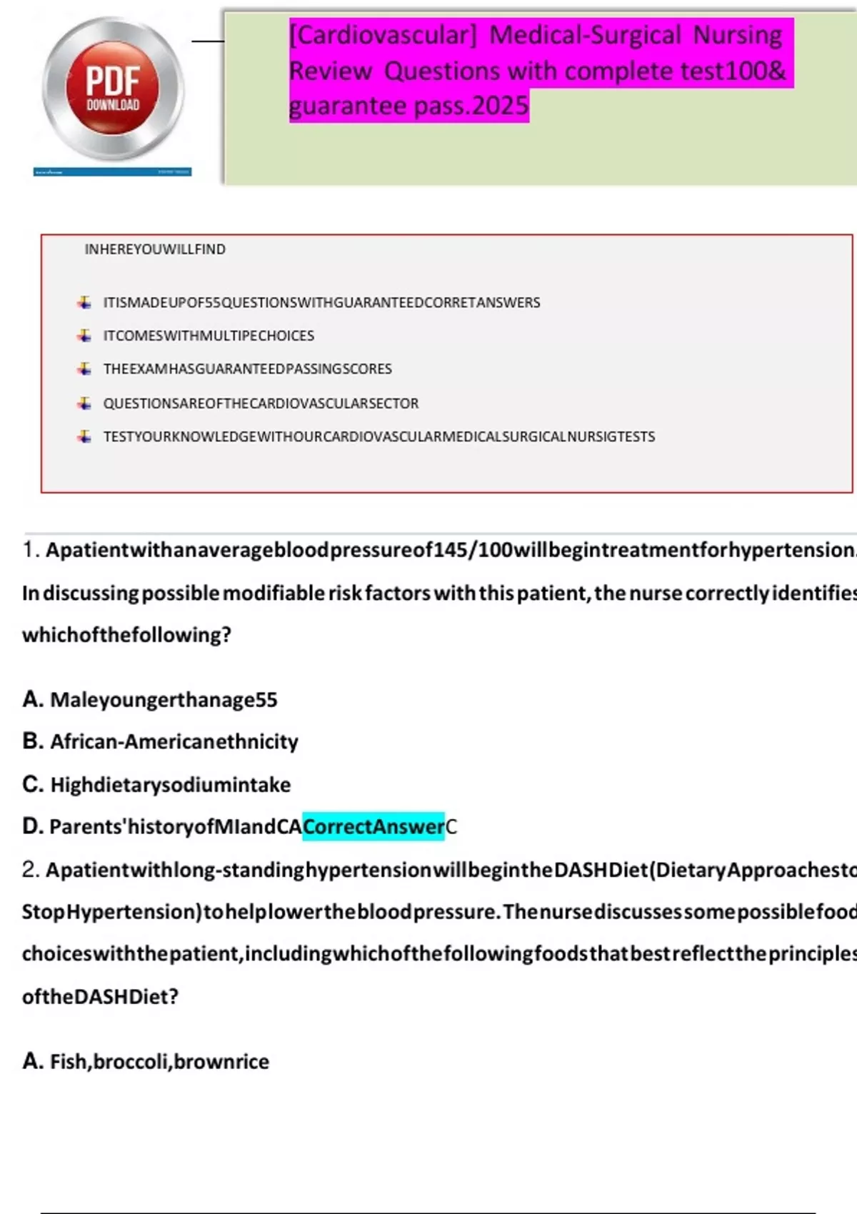 IT IS MADE UP OF55 QUESTIONS WITH GUARANTEEDCORRET ANSWERS