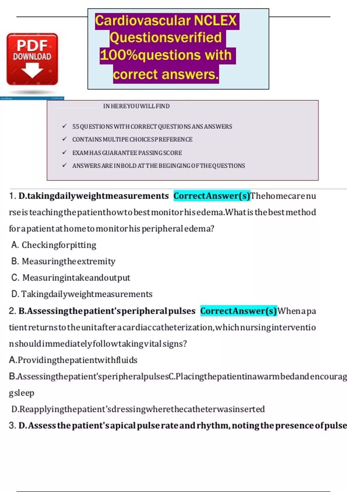 2. B.Assessing the patient's peripheral pulses Correct Answer(s) When a pa