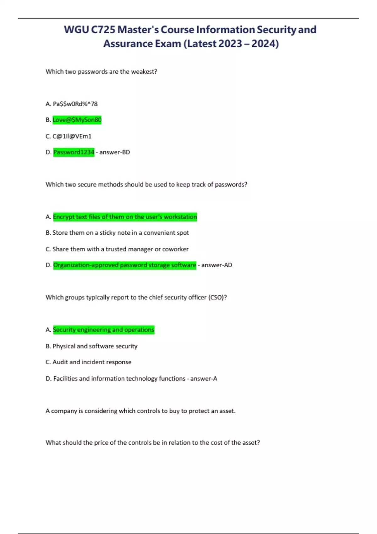 , WGU C725 Master's Course Information Security and
