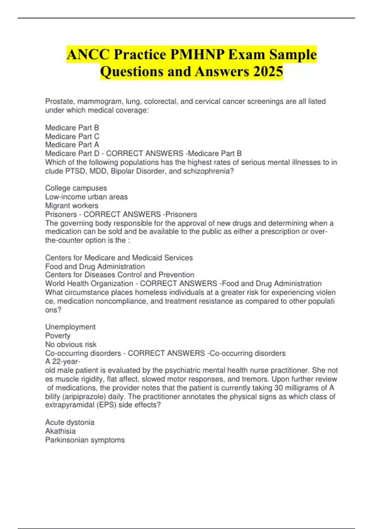 ANCC Practice PMHNP Exam Sample Questions and Answers 2025