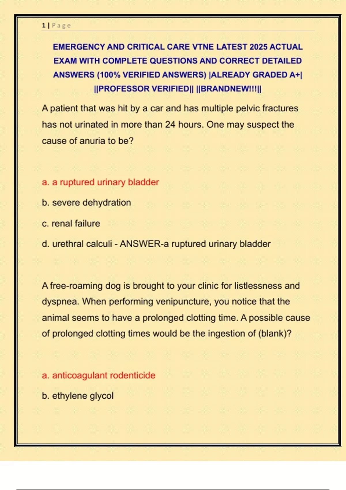 EMERGENCY AND CRITICAL CARE VTNE LATEST 2025 ACTUAL