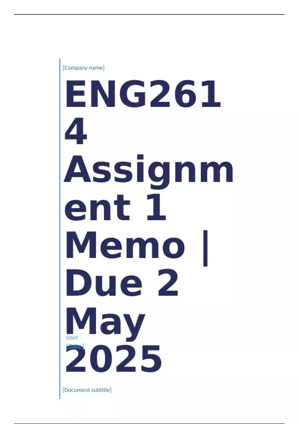ENG2614 Assignment 1 Memo | Due 2 May 2025