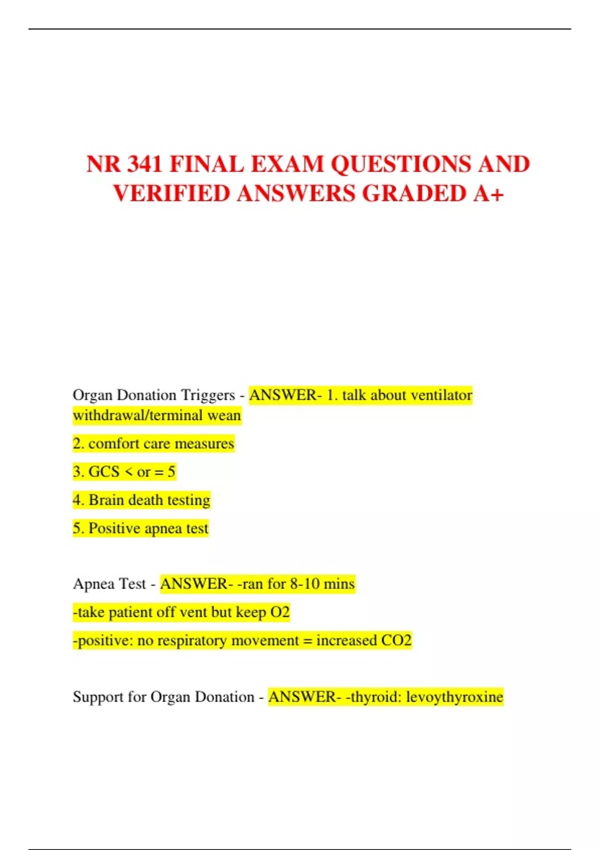 Support for Organ Donation - ANSWER- -thyroid: levoythyroxine