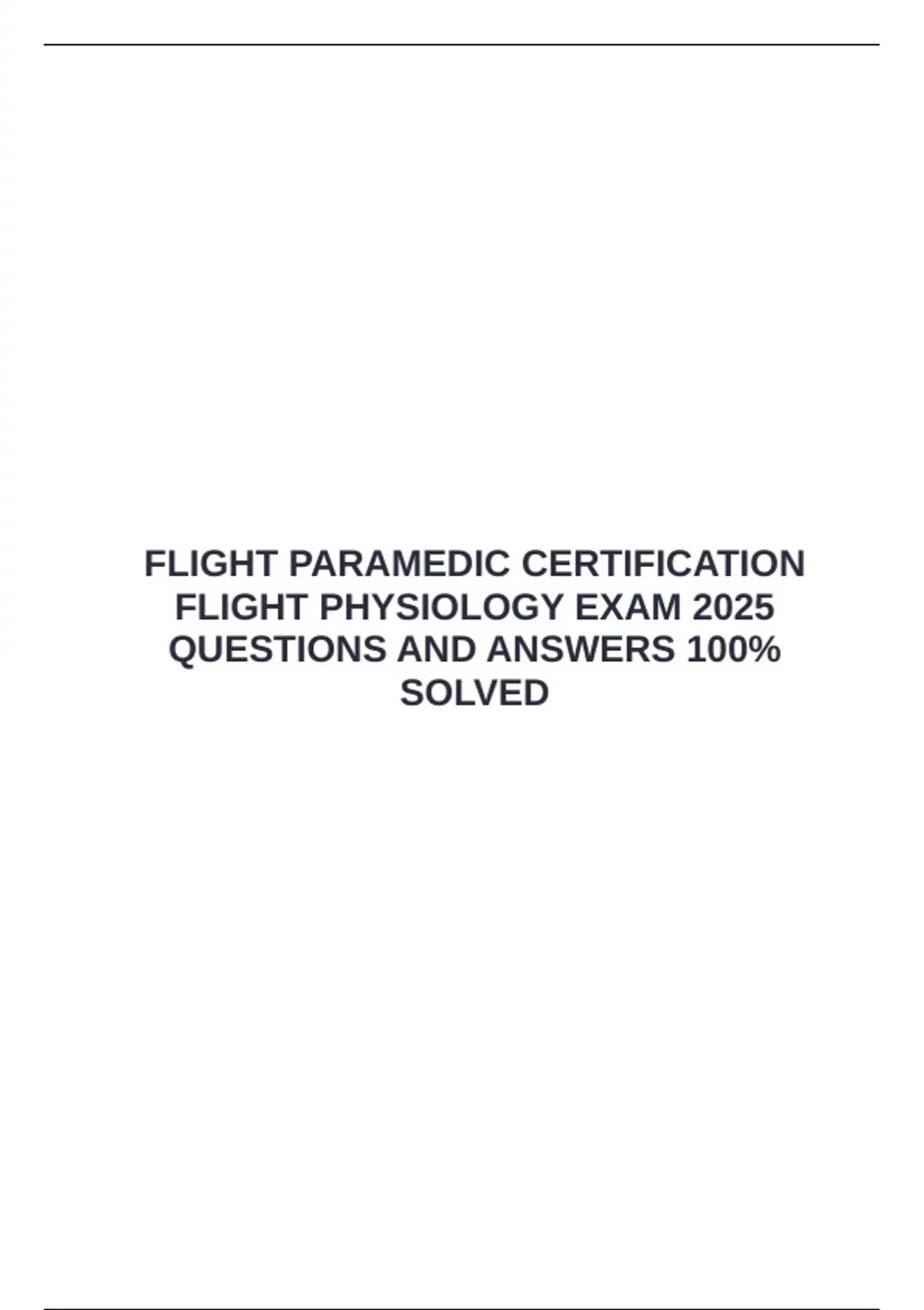 FLIGHT PARAMEDIC CERTIFICATION FLIGHT PHYSIOLOGY EXAM 2025 QUESTIONS AND ANSWERS 100% SOLVED