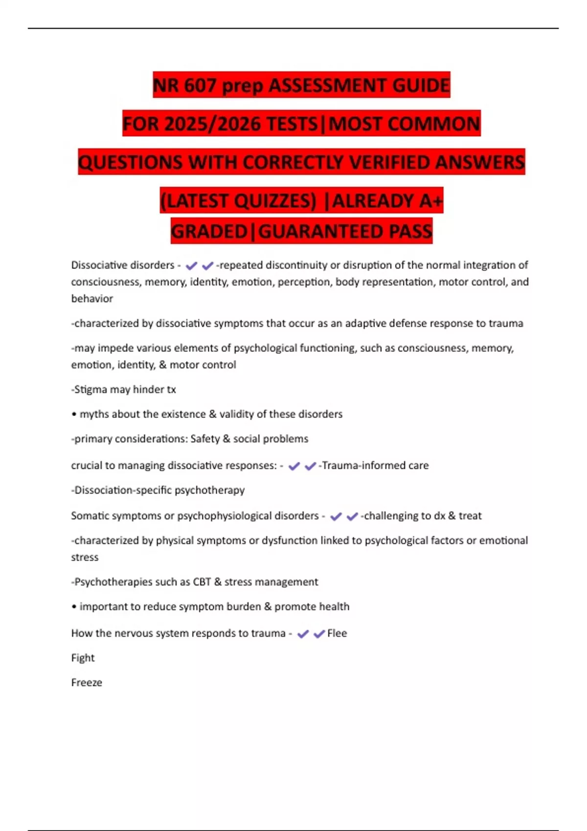 QUESTIONS WITH CORRECTLY VERIFIED ANSWERS