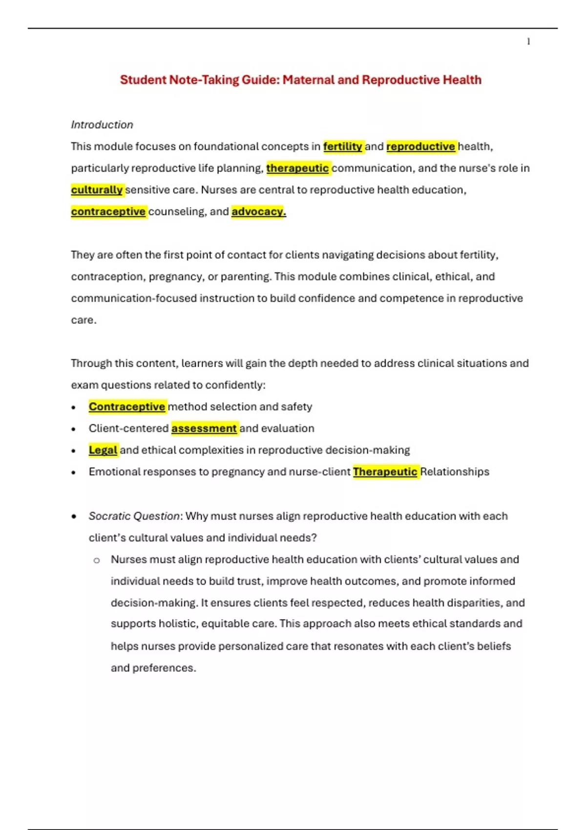 Maternal - Exam 1 Student Note Guides