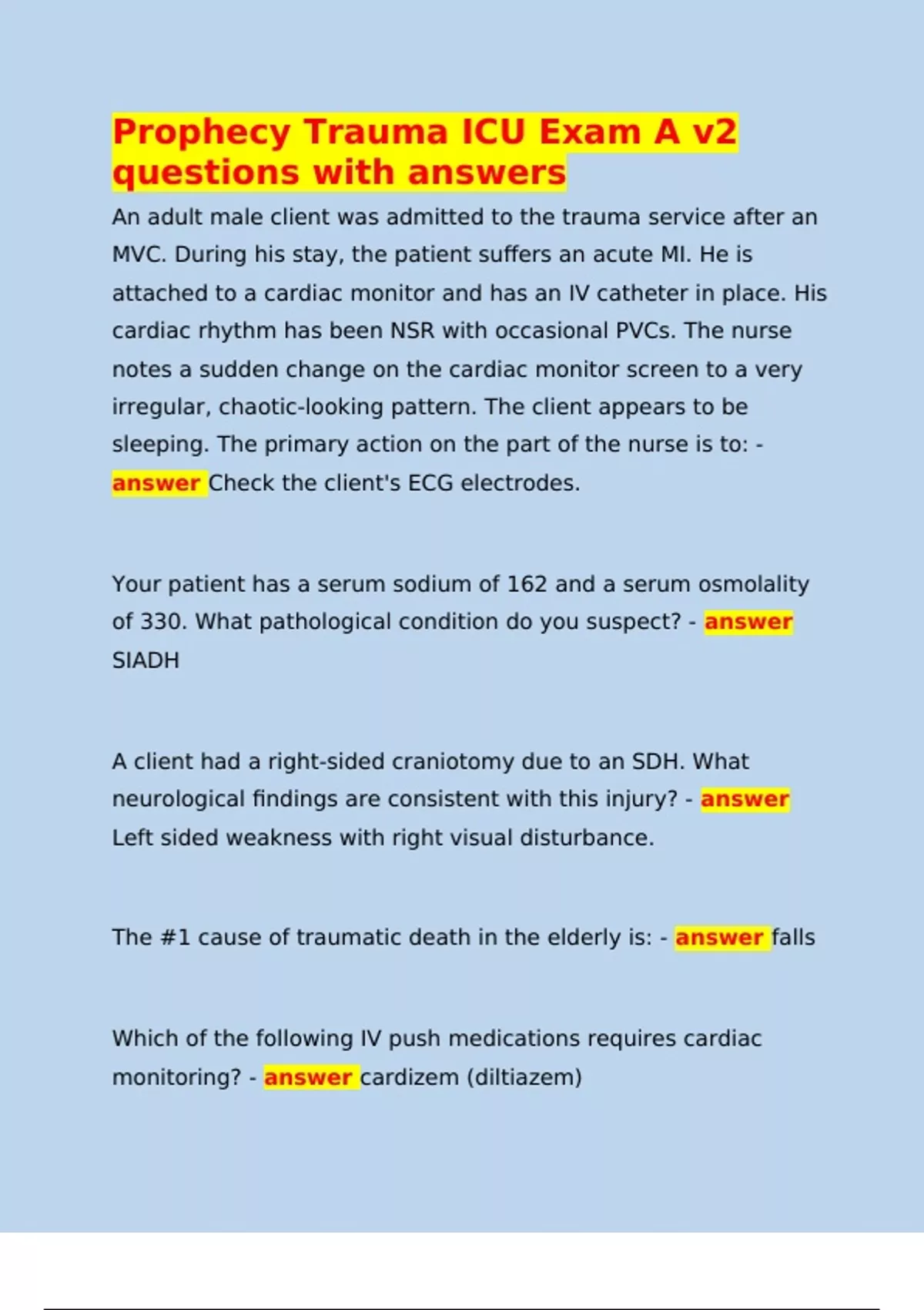 Prophecy Trauma ICU Exam A v2