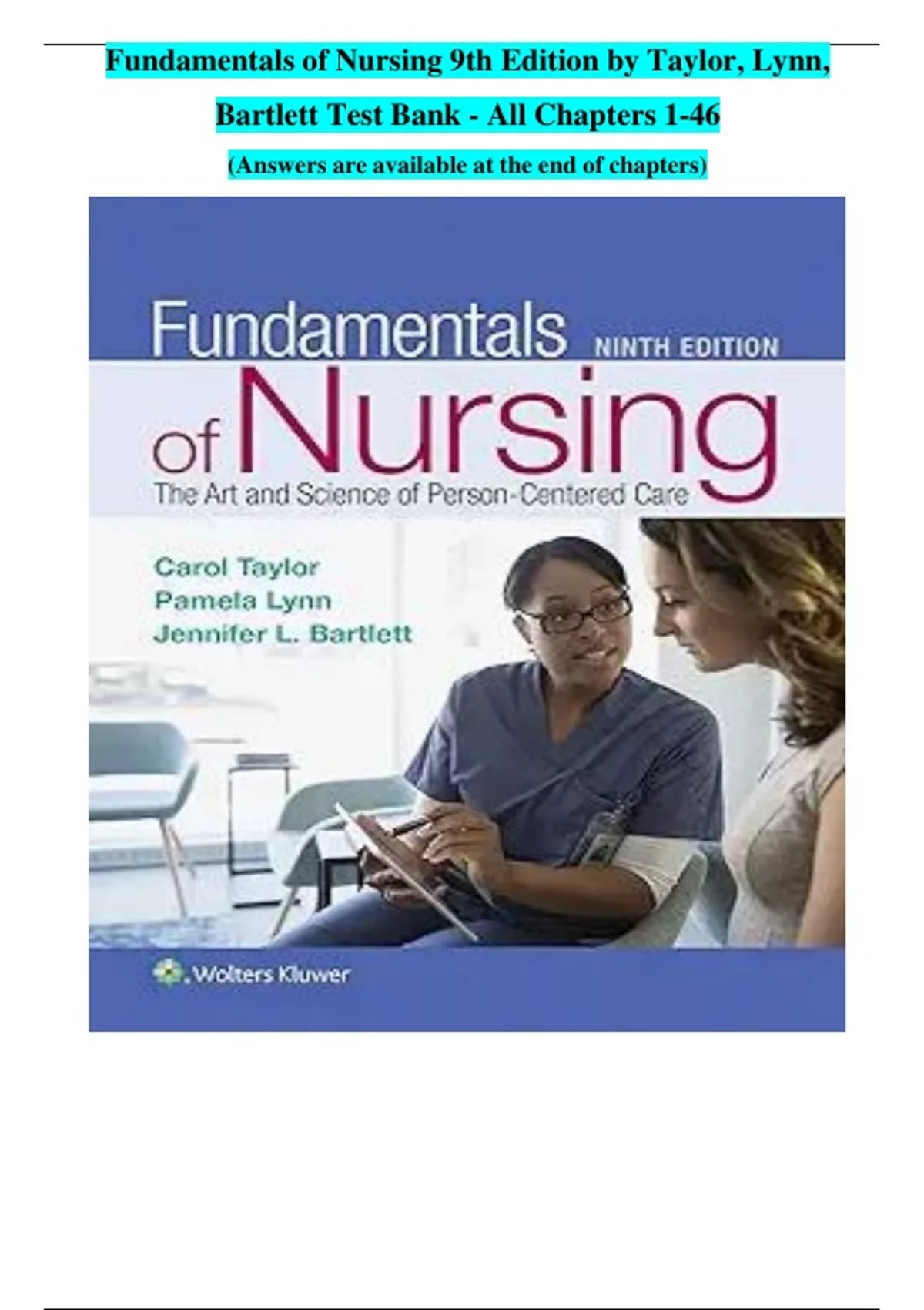 TEST BANK FOR Fundamentals of Nursing 9th Edition by Taylor, Lynn, Bartlett Test Bank